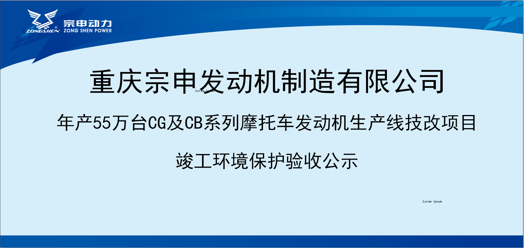 重慶宗申發(fā)動機制造有限公司年產(chǎn)55萬臺CG及CB系列摩托車發(fā)動機生產(chǎn)線技改項目竣工環(huán)境保護驗收監(jiān)測報告公示