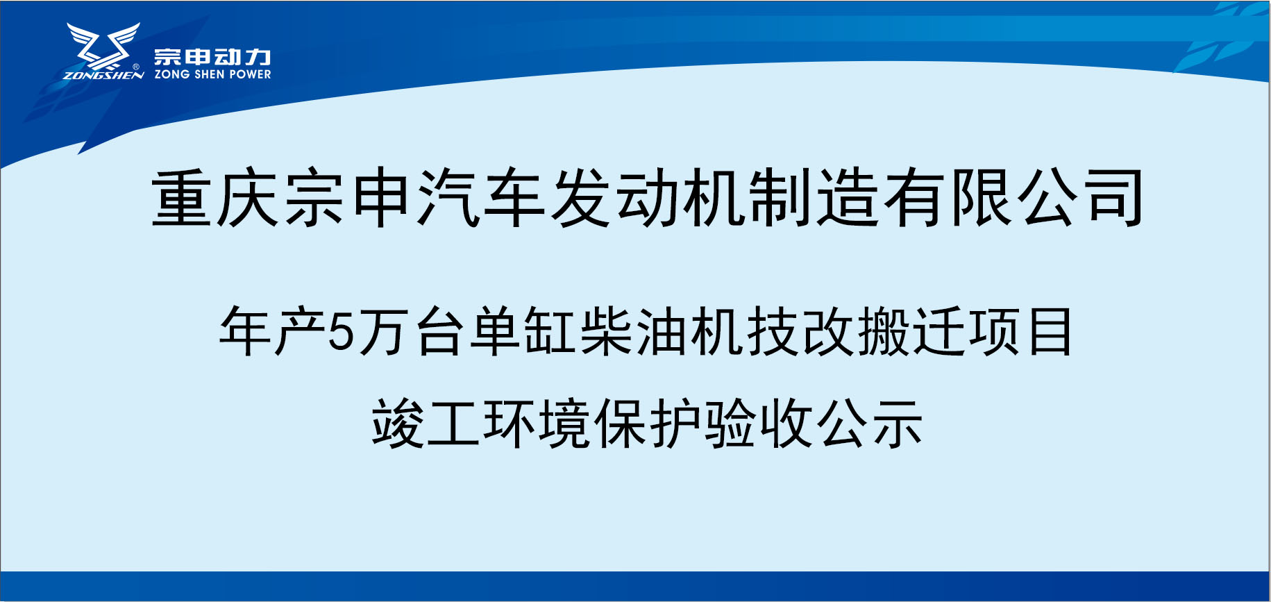 重慶宗申汽車發(fā)動機制造有限公司年產(chǎn)5萬臺單缸柴油機技改搬遷項目竣工環(huán)境保護驗收監(jiān)測報告公示