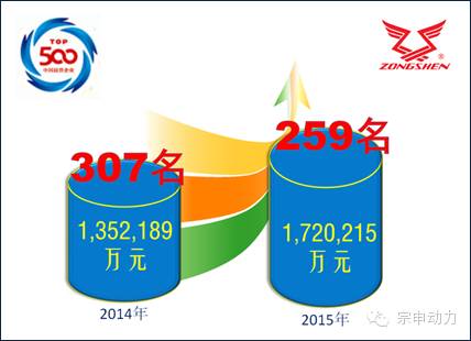 近日,由全國工商聯(lián)編制的“2015中國民營企業(yè)500強”發(fā)布,民營企業(yè)500強收入總額達到146915.71億元,約占中國企業(yè)500強營收總額的四分之一。宗申產(chǎn)業(yè)集團以逾172億元的總營收,位列第259位,營業(yè)收入和排...
