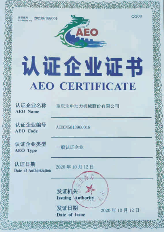 宗申動力通過海關(guān)AEO一般認證